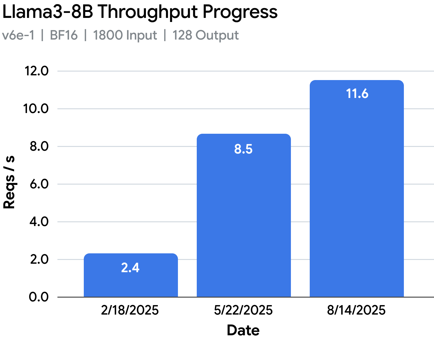 vLLM TPU has come a very long way from the prototype performance in February 2025, reaching nearly 2x-5x performance on those same workloads, while also improving model coverage and usability.
